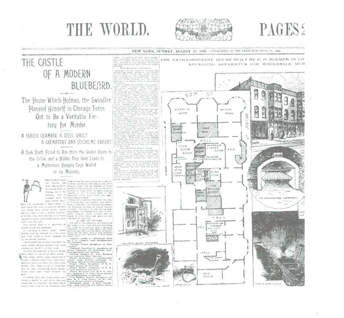 A Gyilkos Kastély alaprajza a New York World 1895-ös számából